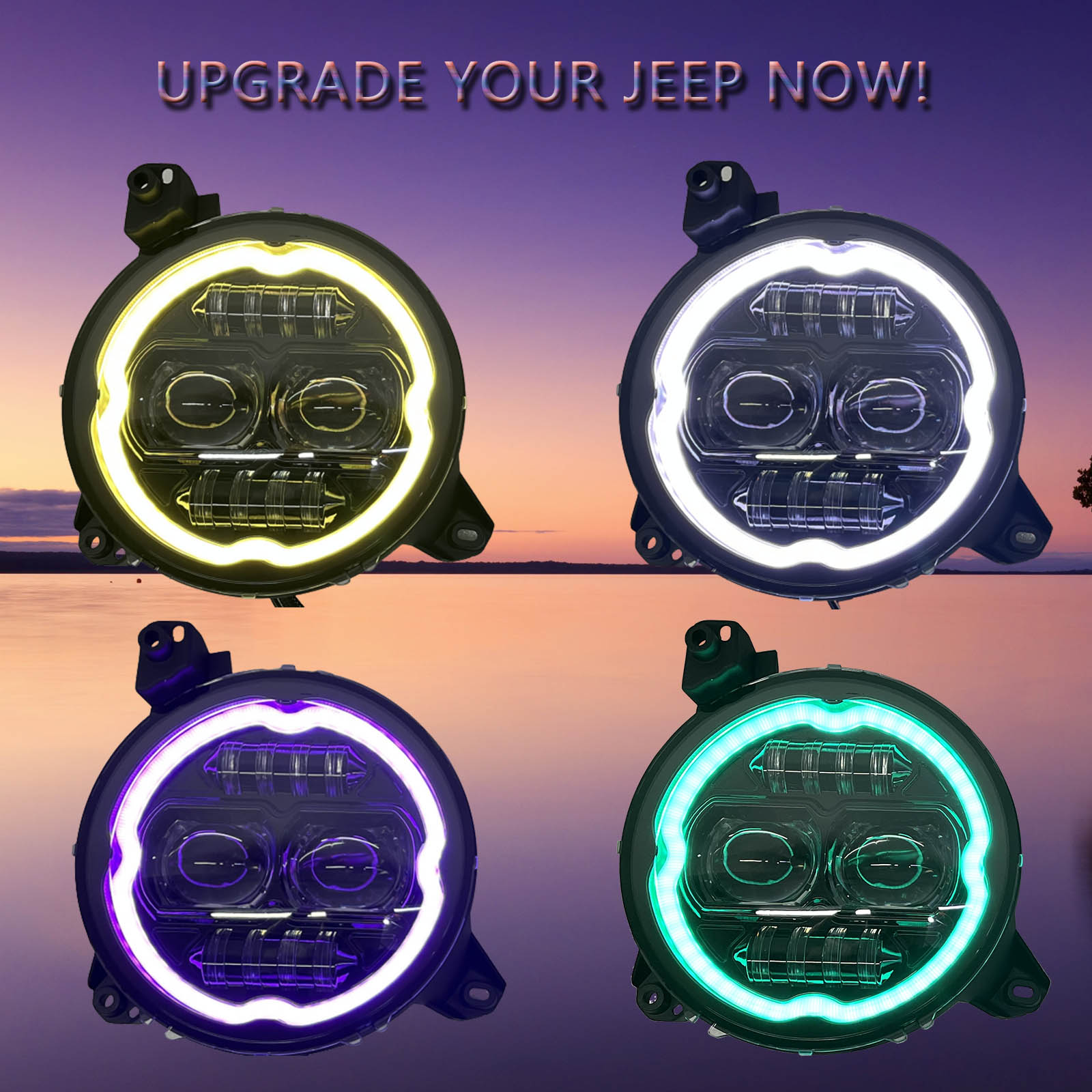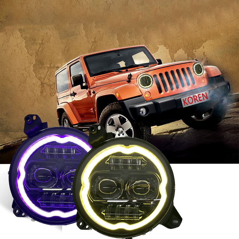 9 Inch LED Headlights with Multi-color Chasing RGB Halos